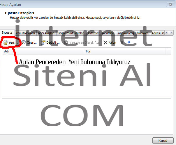 Açılan pencerede “Yeni” butonuna tıklıyoruz.
