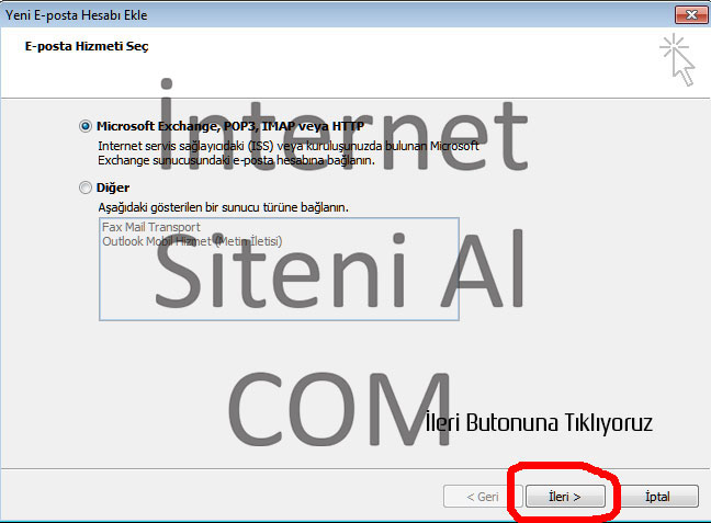 Gelen pencerede “POP veya IMAP”ı seçiyoruz ve “İleri” diyoruz.